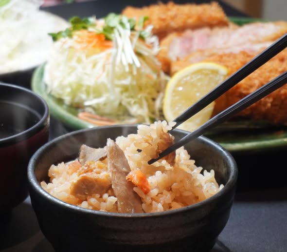 この時期のかつ銀は、「鶏とごぼうの炊き込みご飯」です。